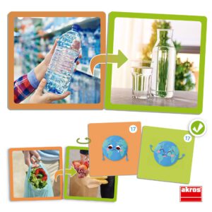 Assoziationsspiel, das dazu einlädt, kleine Veränderungen in unserem Alltag vorzunehmen, um das Bewusstsein für die Notwendigkeit zu schärfen, durch unser Handeln eine nachhaltigere Welt zu schaffen. Mit großen realen Bildern und einem Selbstbeschriftungssystem auf der Rückseite.