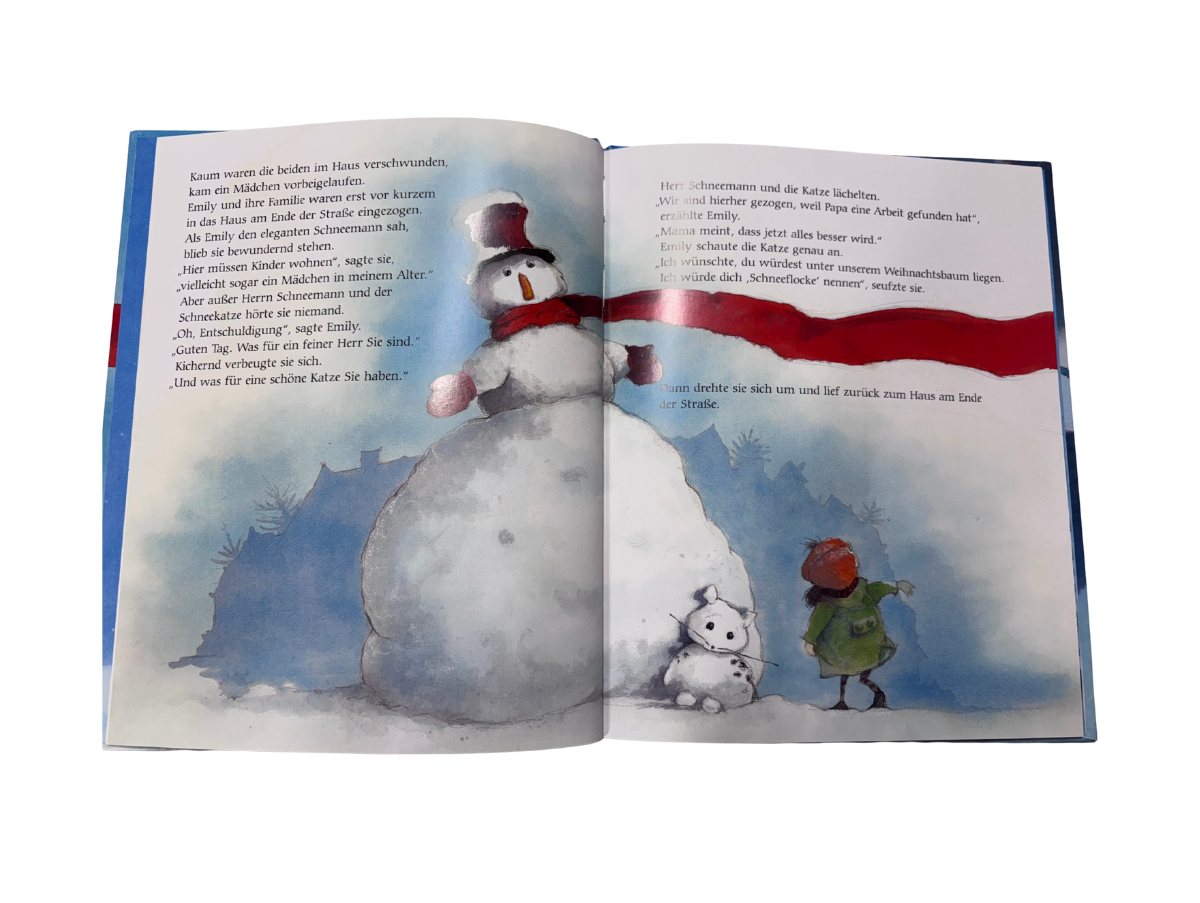 Das Mädchen und die Schneekatze haben einen Wunsch… Mit dem Schnee, der an Weihnachten fällt, hat es immer etwas Zauberhaftes auf sich… aber wenn Herr Schneemann sich an seinen Hut tippt, dann erst beginnt der richtige Zauber.
