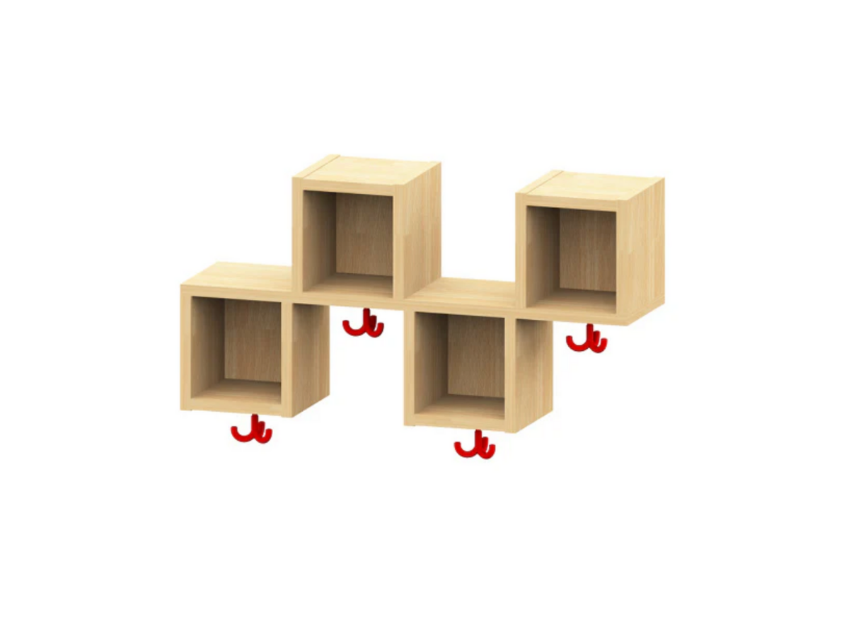 Unter jedem Fach befindet sich ein stabiler Dreifachhaken für Jacken oder Turnbeutel. Die Haken sind in 8 Farben wählbar und ermöglichen eine farbliche Zuordnung von Gruppen oder Plätzen.