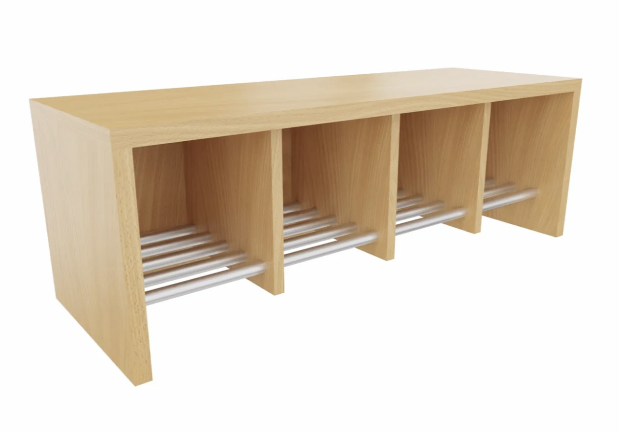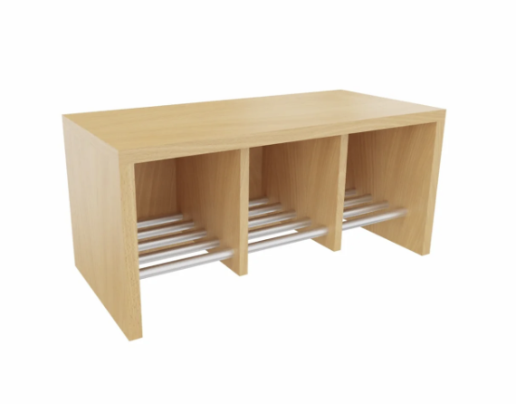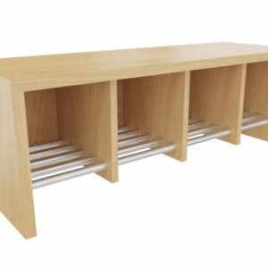 Diese hochwertige Garderobenbank aus stabilem Holzdekor in Buche ist die ideale Ergänzung für den Garderobenspind in Kindertagesstätten, Kindergärten und Schul-Horte. Sie ist besonders standsicher, langlebig und bietet Kindern einen komfortablen Platz zum Sitzen beim An- und Ausziehen.