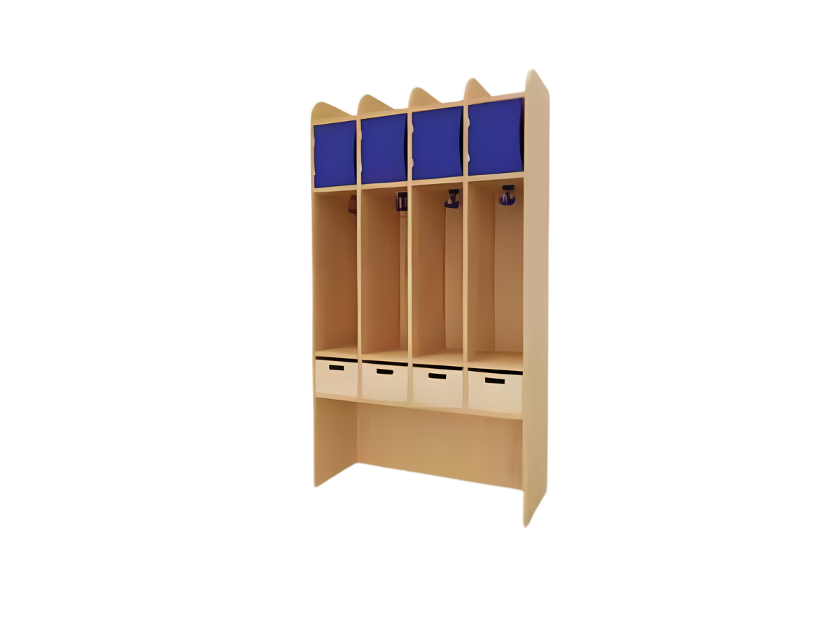 Praktischer Garderobenspind mit durchgehenden Mittelwänden – perfekt für Kitas & Krippen