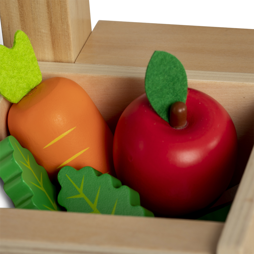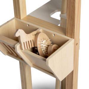 Mit Striegel, Bürste und Kamm können Kinder ihr „Pferd“ liebevoll pflegen und dabei Fürsorge, Verantwortungsgefühl und Feinmotorik entwickeln. Die kindgerecht dimensionierten Holzaccessoires liegen gut in der Hand und laden dazu ein, alltägliche Abläufe aus der echten Pferdewelt spielerisch nachzuahmen. Ergänzt wird das Set durch kleine „Leckereien“ wie Karotten, Äpfel und Salatblätter – ideal, um Füttern und Versorgen in das Rollenspiel einzubeziehen.