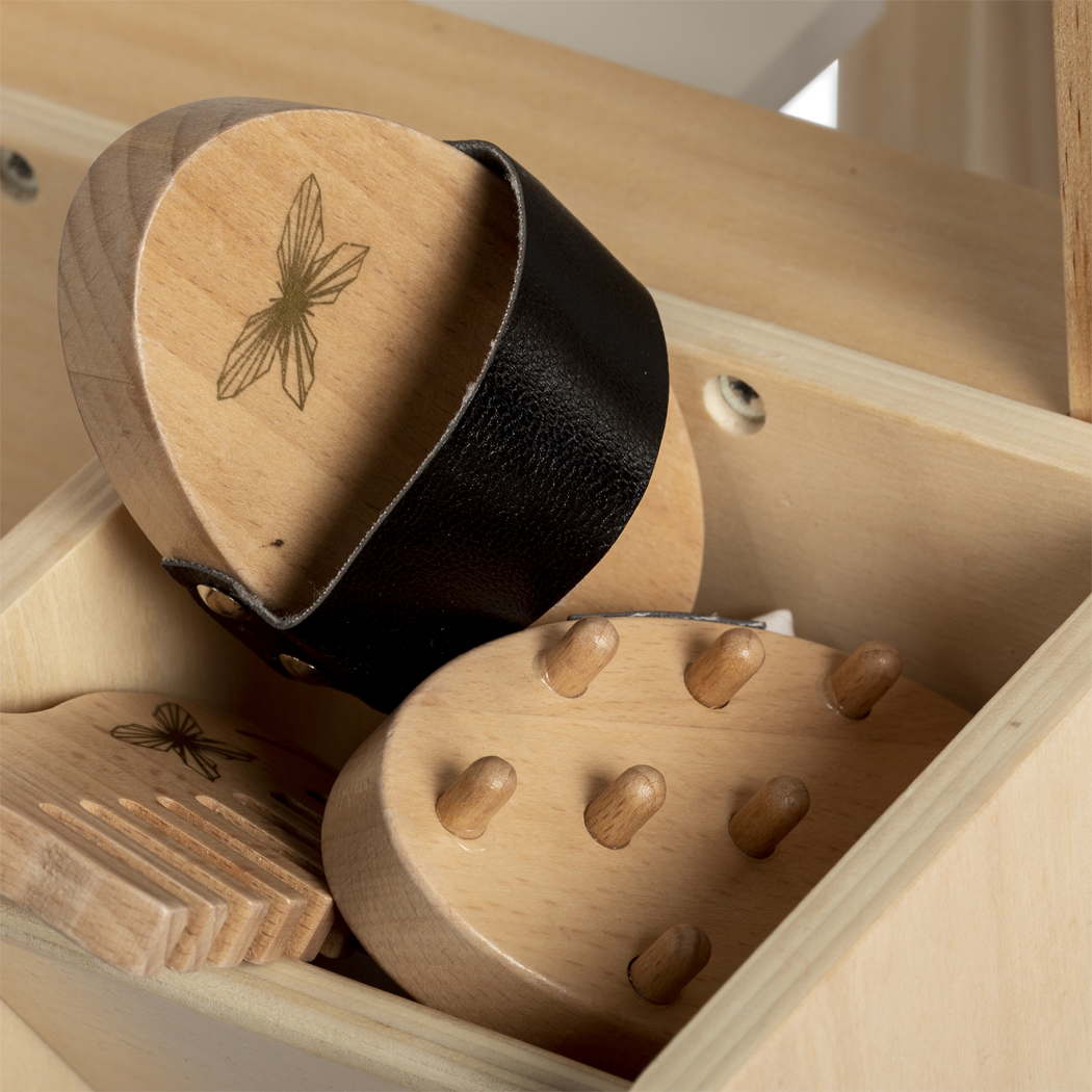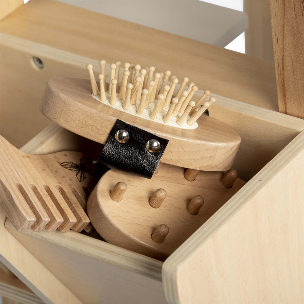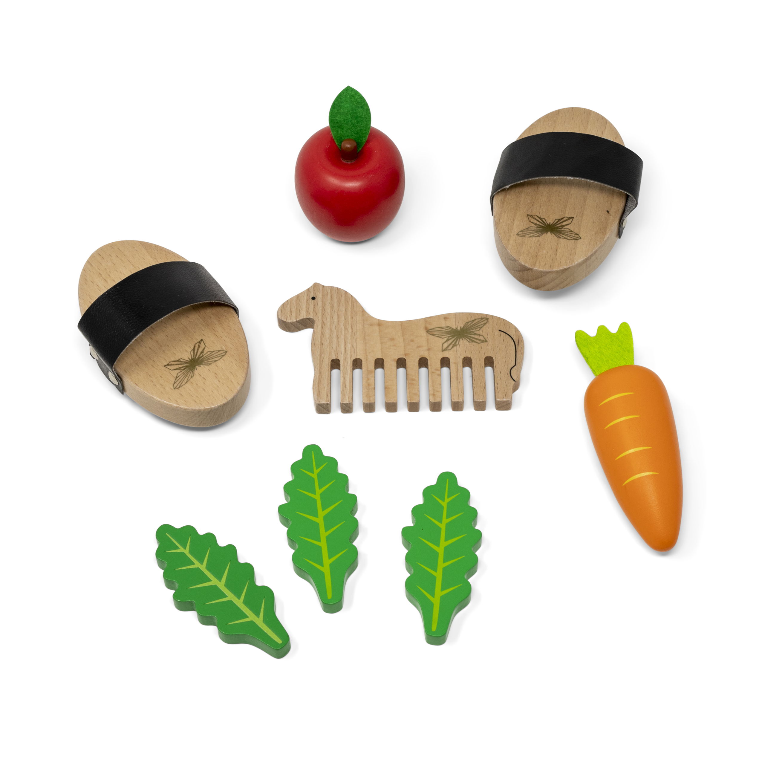 Der Stall sorgt für eine übersichtliche und kindgerechte Aufbewahrung und macht das Aufräumen selbst zum Teil des Spiels. Das Pflege-Set lädt dazu ein, Fürsorge und Feinmotorik zu entwickeln, während die vier unterschiedlichen Steckenpferde vielfältige Rollen- und Gruppenspiele ermöglichen. So entsteht ein ganzheitliches Spielangebot, das Bewegung, Fantasie und pädagogische Ziele miteinander verbindet.