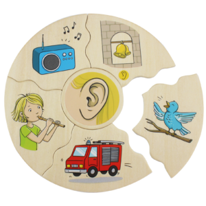 In diesem Puzzle geht es um Erkennen, Zuordnen und Begreifen der fünf Sinne: Sehen, Hören, Riechen, Schmecken und Tasten. Das wird im Spiel- und Puzzleverlauf und in unterschiedlichen Spielvarianten durch Wahrnehmung, Sensibilisierung und sprachliche Artikulation vermittelt und geübt.