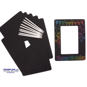 Dieser Notizblock überrascht durch eine Schicht aus Regenbogenpapier unter der mattschwarzen Oberfläche. In einer Packung sind 200 Blatt Papier auf denen mit den 24 enthaltenen Holz-Kratzstäben gemalt werden kann – ganz ohne Tinte oder Buntstifte. Die leuchtenden Farben verstecken sich unter der schwarzen Oberfläche, so dass bunte Bilder gemalt bzw. gekratzt werden können. Auch als schöne Geschenkidee geeignet.
