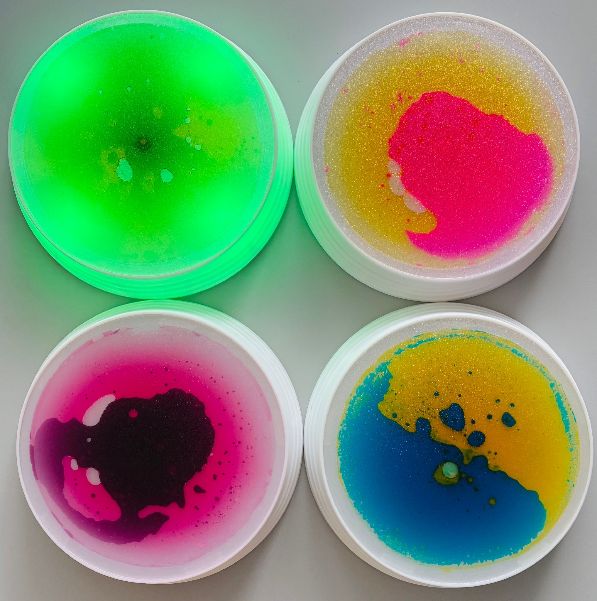… Die vier bunten Leuchtinseln sind ein Highlight für jede Sinnes- oder Bewegungslandschaft. Sie reagieren auf Druck: Wenn Kinder darüber laufen, entstehen faszinierende Farbspiele in Pink, Gelb-Blau, Gelb-Grün und Lila. Beim Balancieren, Springen oder Sitzen trainieren die Kleinen Gleichgewicht, Körperwahrnehmung und Koordination. Die Leuchtinseln können frei im Raum platziert werden. Sie sind bis 60 kg belastbar und lassen sich an der Unterseite ein-/ausschalten (3 x AA Batterien erforderlich, nicht inkl.).