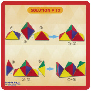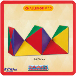Der Würfel besteht aus 24 magnetischen Dreiecken. Die 21 Vorlagenkarten zeigen, wie sich daraus einfache und komplizierte Körper konstruieren lassen.