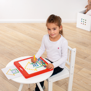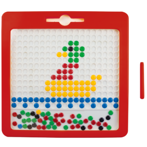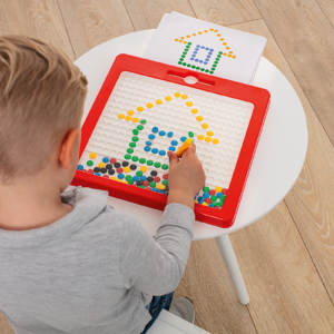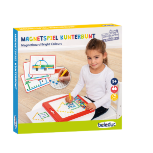 Mit dem Magnetspiel lassen sich tolle Bilder erschaffen. Die bunten Steine lassen sich mit dem magnetischen Stift anziehen und in die Vertiefungen legen. Dadurch können kreative Kunstwerke erstellt werden. Tiere, Autos und vieles mehr werden „kunterbunt“ zusammengestellt.