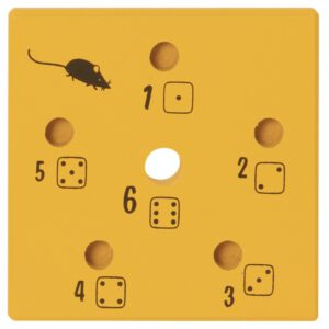 Lehrreiches Würfelspiel für zwei und mehr Kids ab 4. Mit zwei Spielflächen für ein Zahlen- oder, für die ganz Kleinen, ein Farb-Würfelspiel. So geht es: Alle Holzstäbe werden an die Spieler verteilt. Würfelnd werden die Felder des Spielbretts entsprechend der Augenzahlen besetzt. Bei 6 fällt das Stäbchen durch. Ist ein Feld bereits besetzt, muss der Spieler den Stab nehmen, und der Nächste ist dran. Wer keine Holzstäbe mehr hat, ist Sieger.