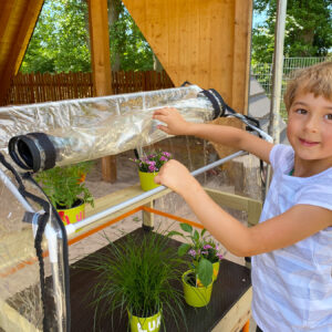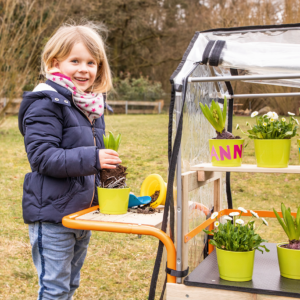 Mit dem Gewächshaus entdecken Kinder die botanische Welt und werden selbst zum Gärtner. Über das ganze Jahr können sie eigene Pflanzen, Kräuter, Gemüse und Blumen heranziehen. Für Kinder ist es spannend, faszinierend und unheimlich lehrreich, wenn aus Samenkörnern etwas wächst.
