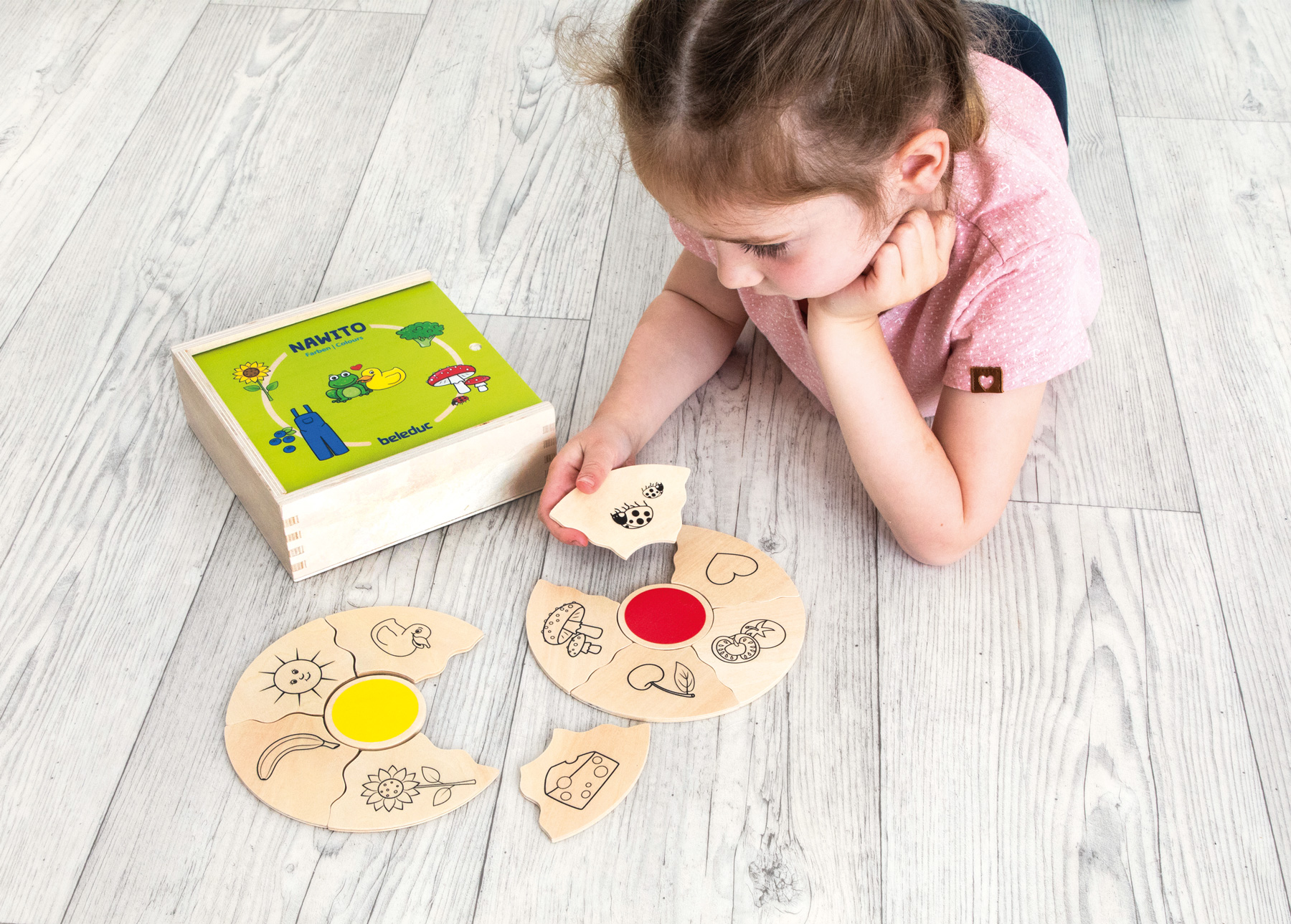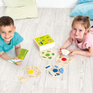 Dieses 24-teilige Puzzle fördert das logische Kombinieren, die Kommunikation sowie das Verständnis rund um das Thema „Farben“ auf kindgerechte Art und Weise.