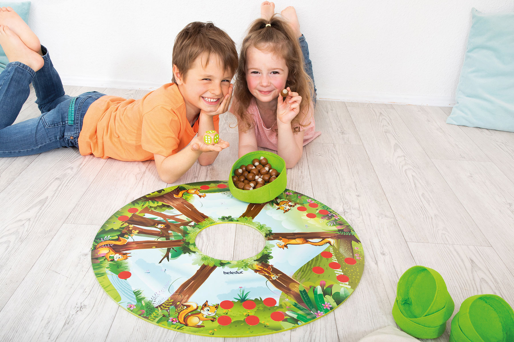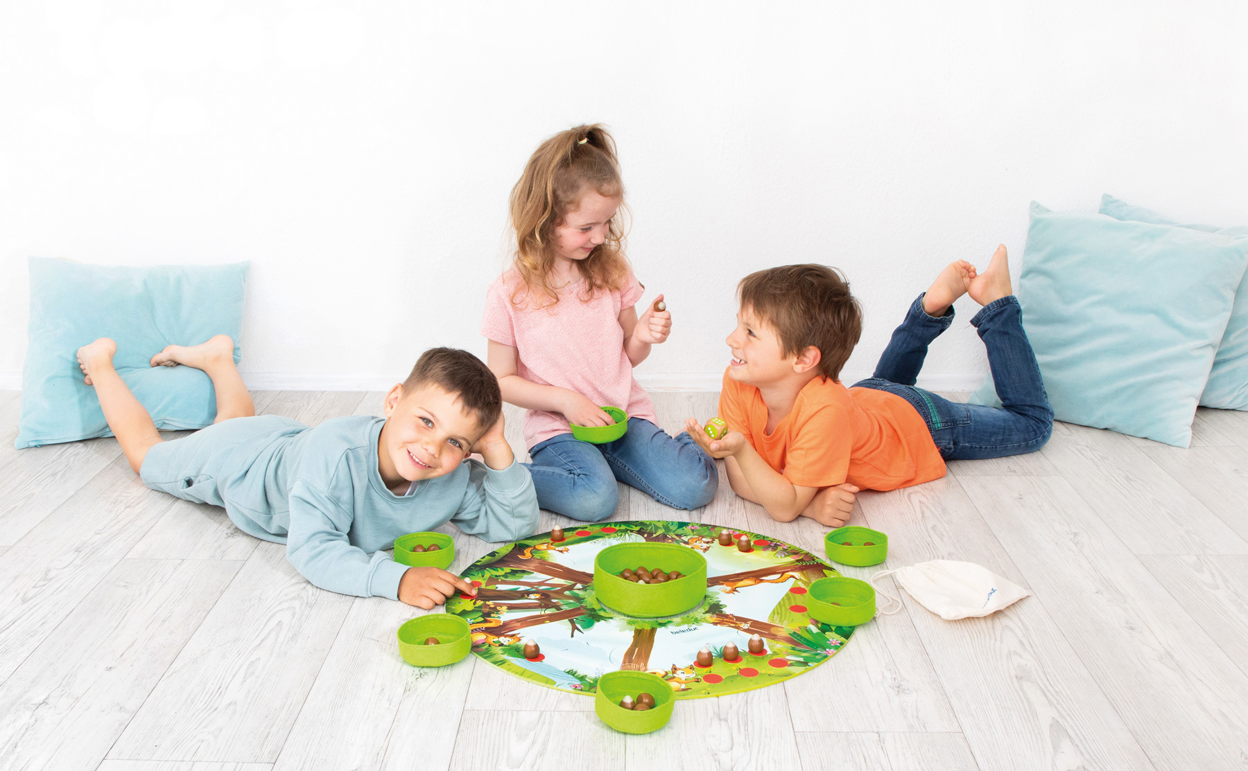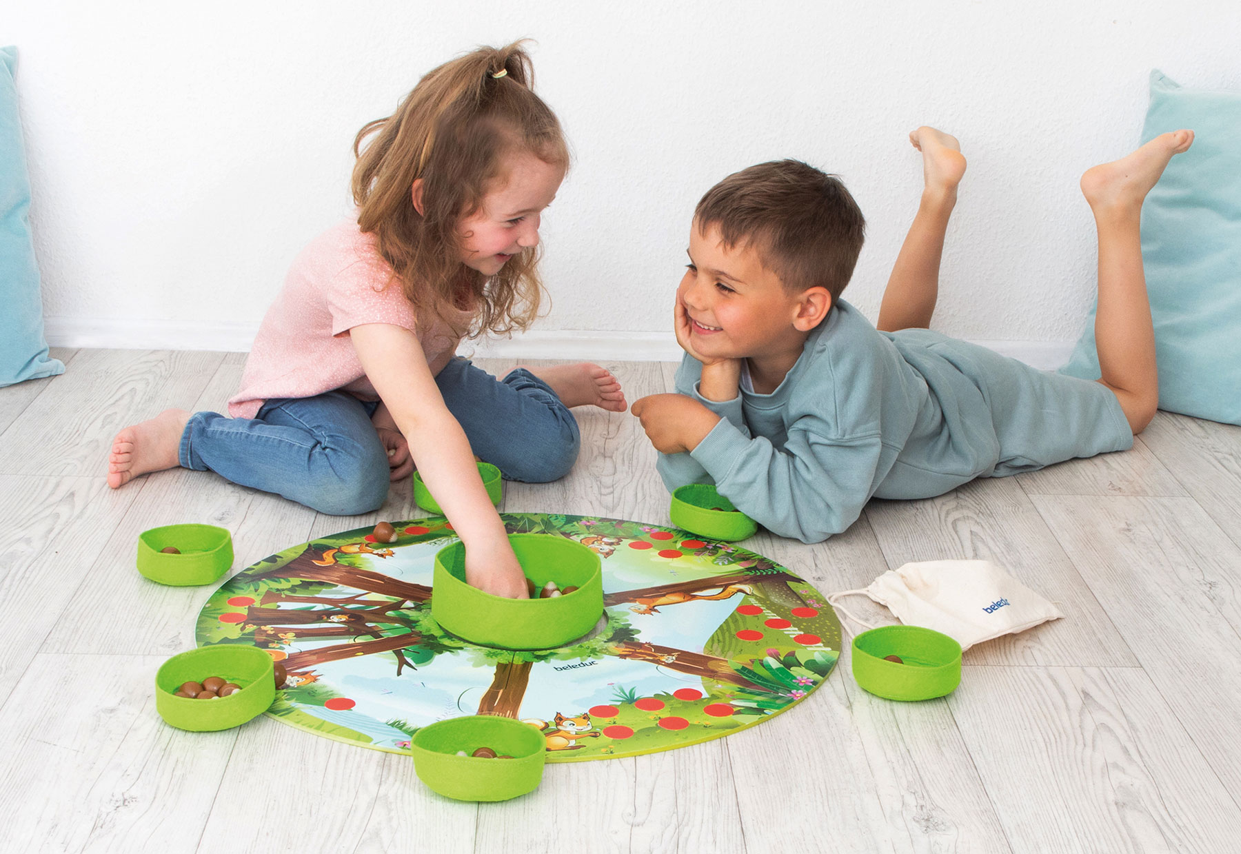 In diesem Spiel lernen Kinder die Zahlenmenge von 1 bis 6 kennen. Sie üben sich im ersten Zählen, der genauen Wahrnehmung und dem Mengenverständnis. Gleichzeitig wird beim Greifen und Platzieren der Nüsse die Feinmotorik gefördert.