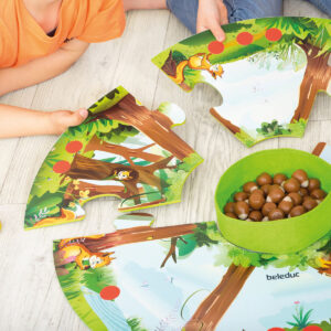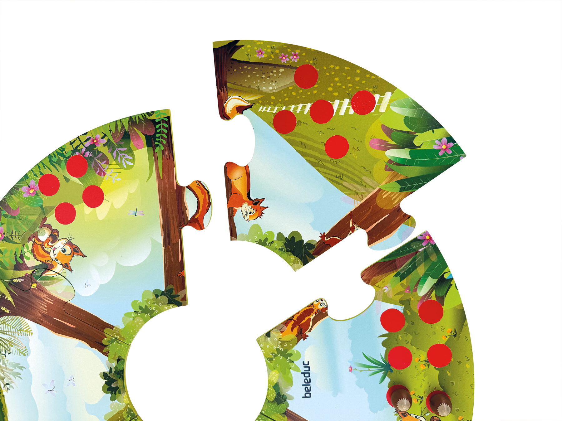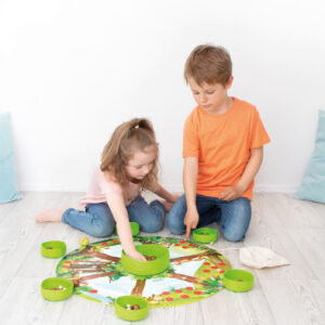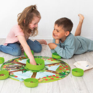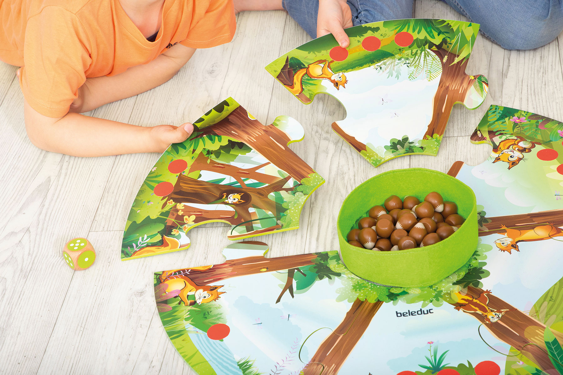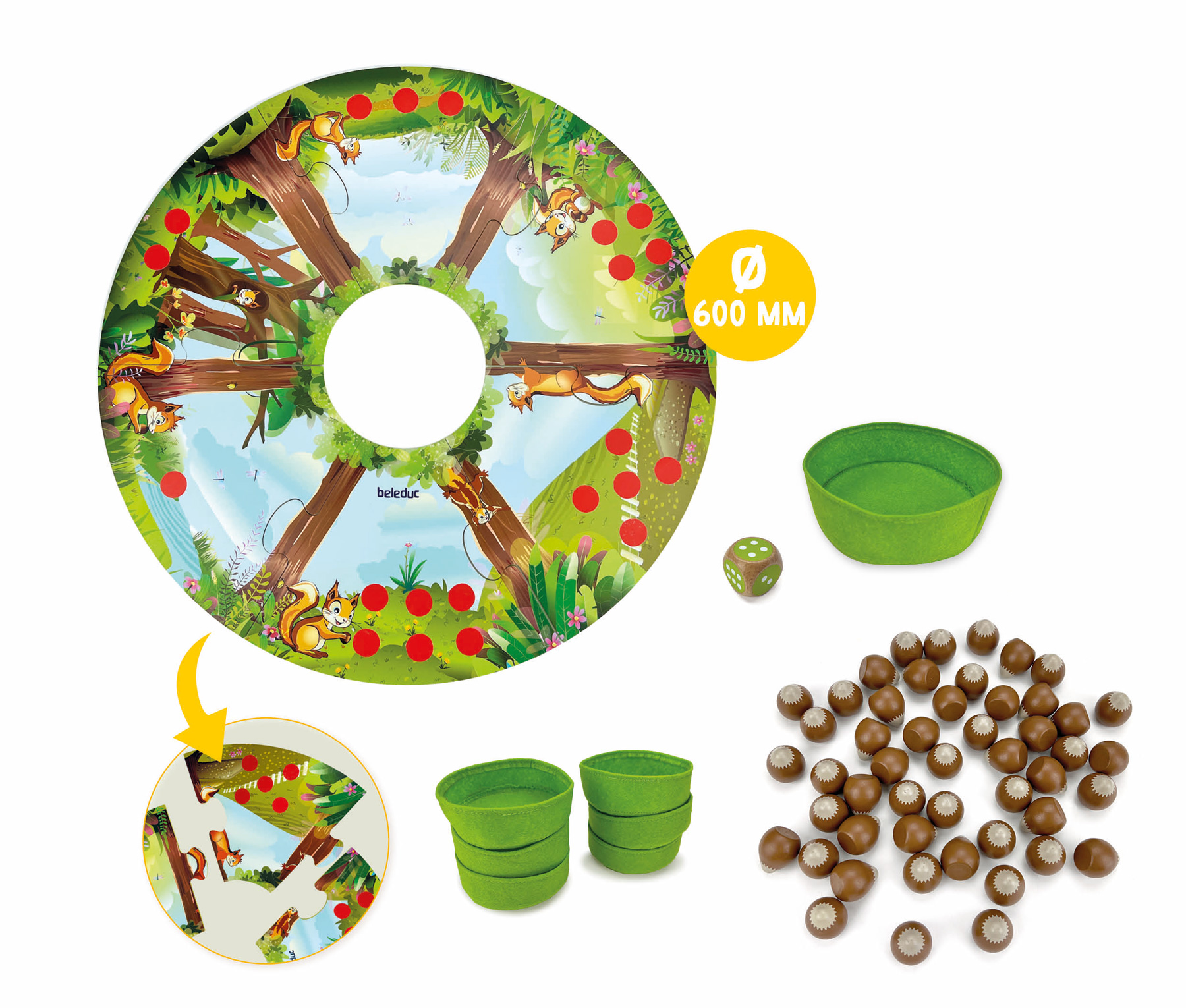 In diesem Spiel lernen Kinder die Zahlenmenge von 1 bis 6 kennen. Sie üben sich im ersten Zählen, der genauen Wahrnehmung und dem Mengenverständnis. Gleichzeitig wird beim Greifen und Platzieren der Nüsse die Feinmotorik gefördert.