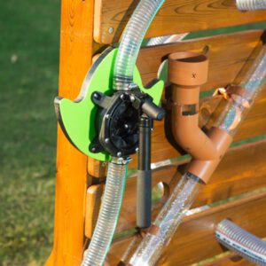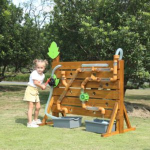 Die Outdoor-Wasserwand lässt Kinderherzen höher schlagen, denn damit ist Outdoor Wasserspaß garantiert! Die Schläuche kann man durch die Bohrungen in der Wand von der Vorder-und Rückseite immer wieder neu miteinander kombinieren. Mit der robusten Hand-Pumpe wird das Wasser ganz unkompliziert durch die Röhren gepumpt. Dabei können die Kinder fasziniert beobachten, welchen Lauf das Wasser nimmt.