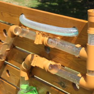 Umfangreiche Ausstattung und Zubehör. Dank den vielen im Set enthaltenen Verbindern, den unterschiedlichen Rohren und dem Wasserrad, können die Kinder den Wasserlauf beliebig oft ändern.