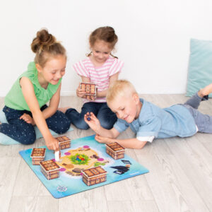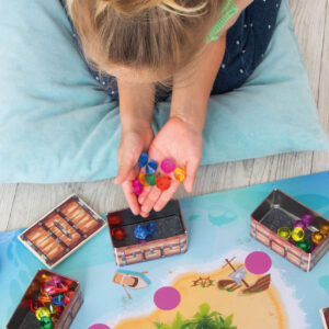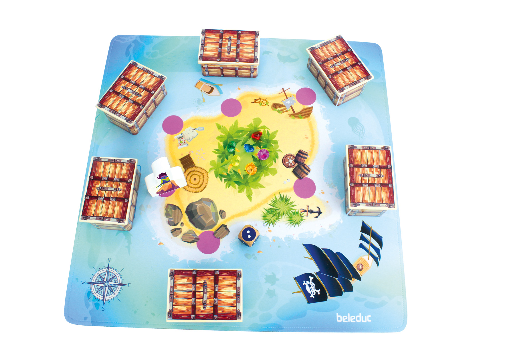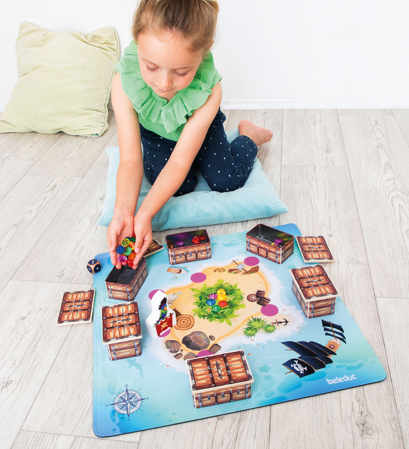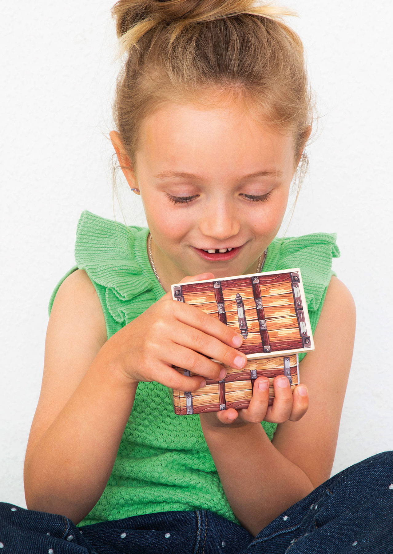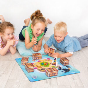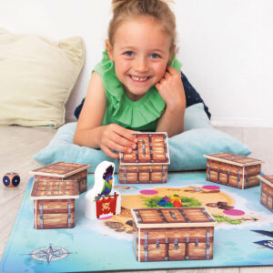 Auf zur Schatzinsel! Wer sich am besten merken kann, welche Edelsteine in welcher Kiste liegen, gewinnt den ganzen Schatz.