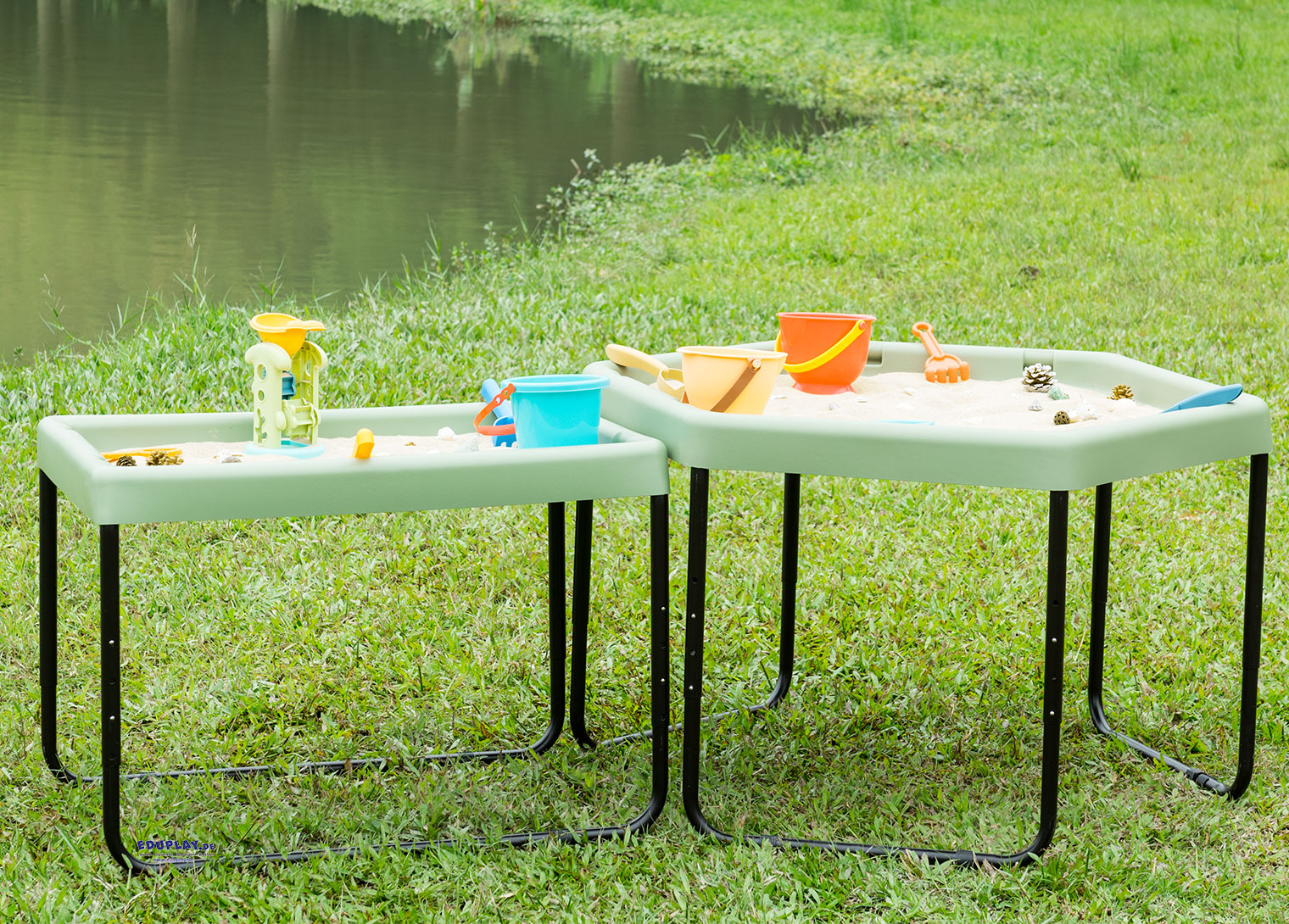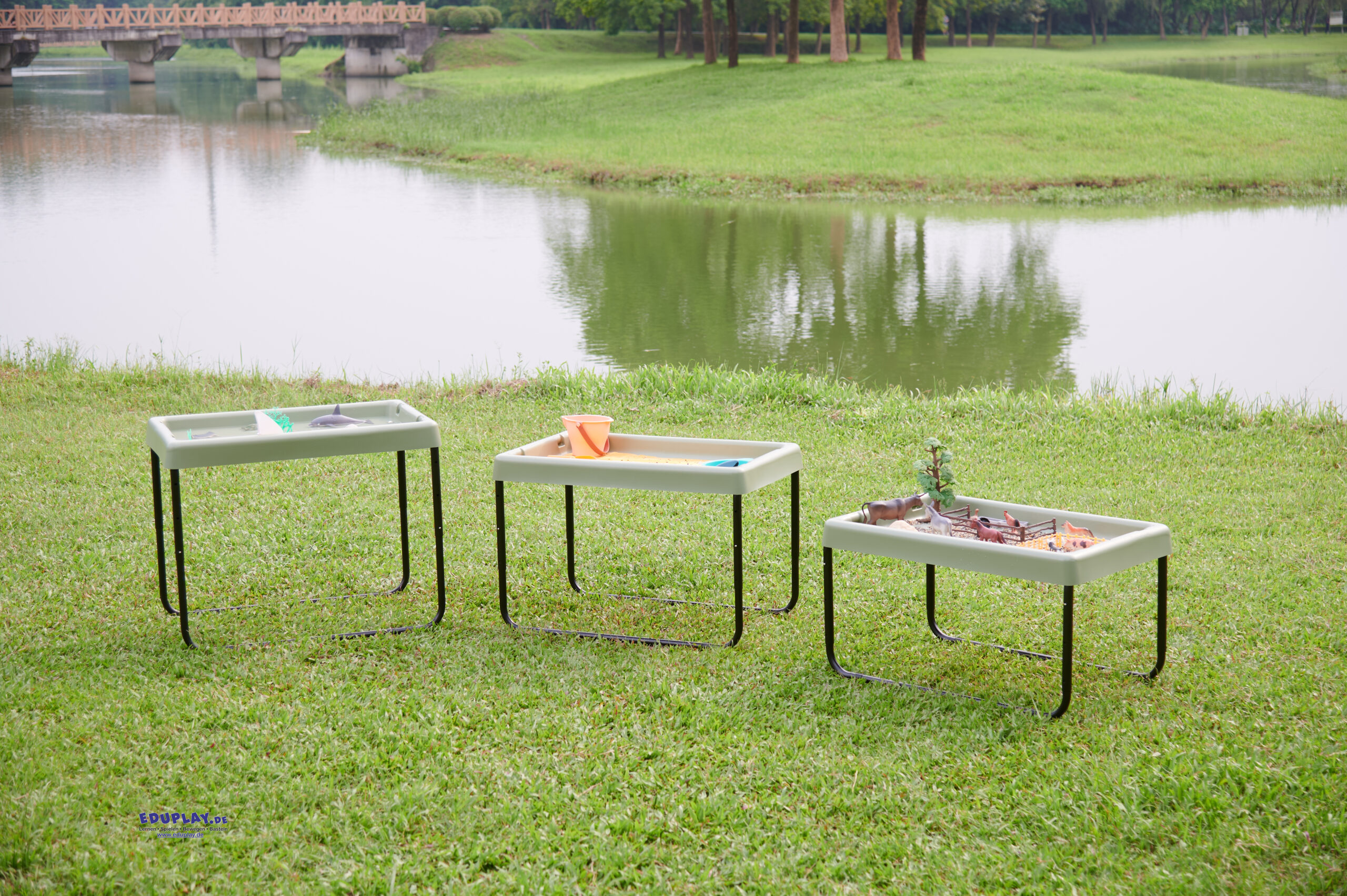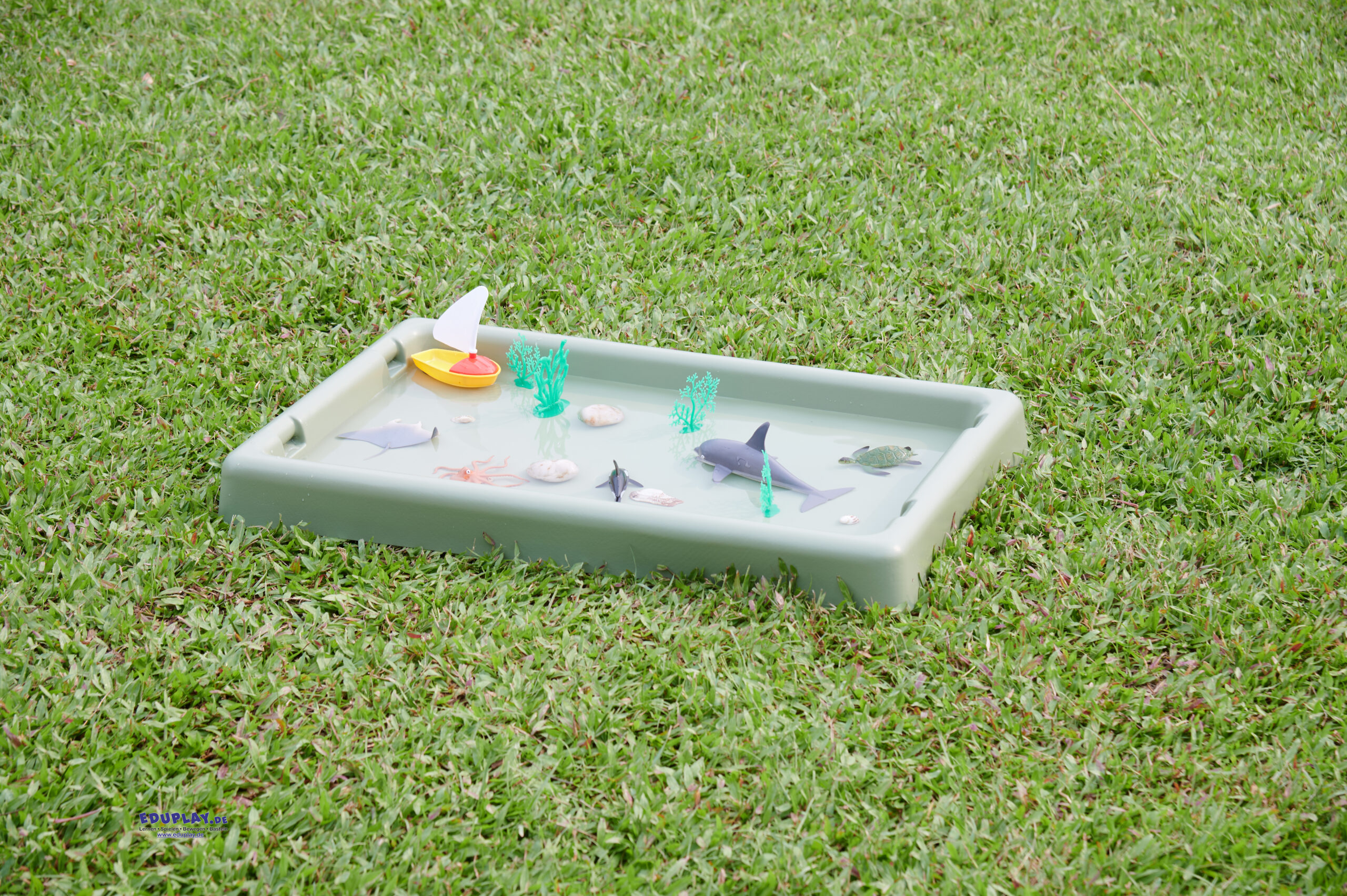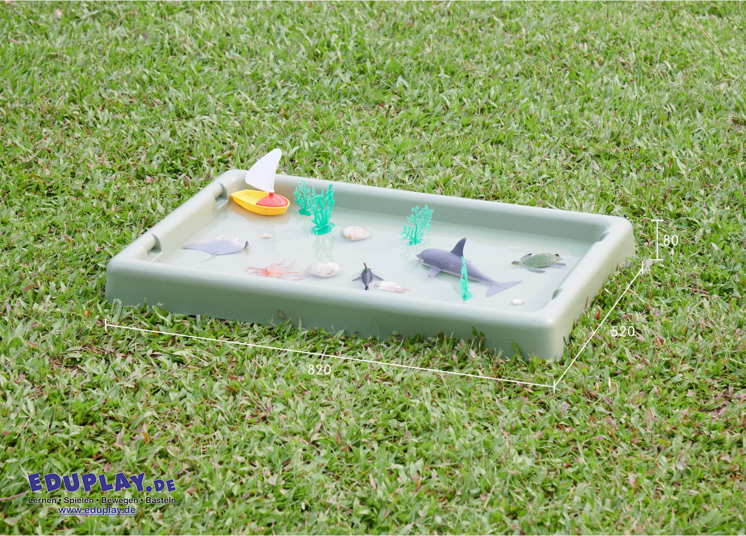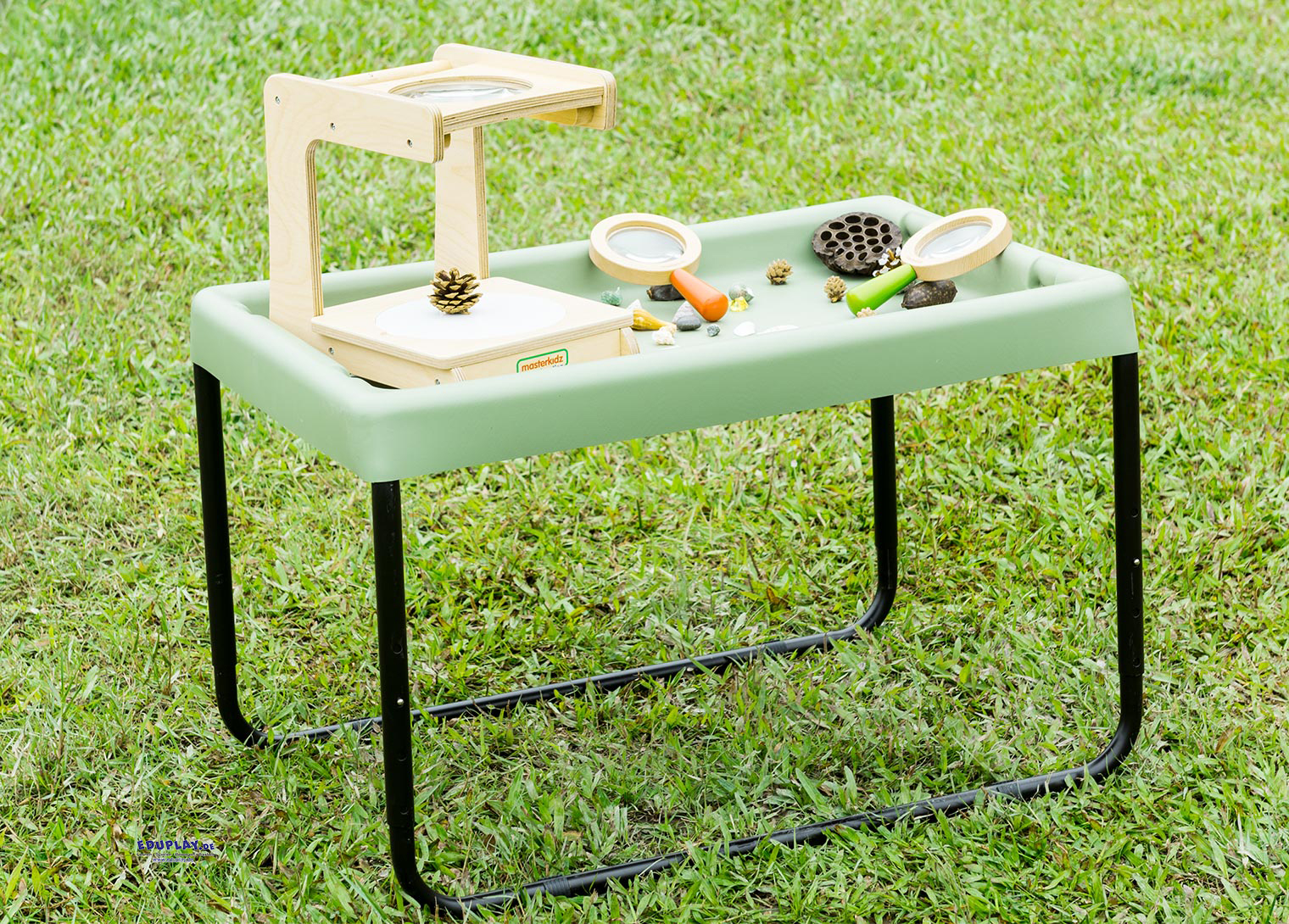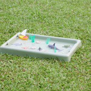 … in der Farbe Salbei sieht natürlich aus und ist ideal, um Naturgegenstände, Pflanzen, Blätter und Fundstücke zum Beobachten und Entdecken darauf zu platzieren. Wenn Kinder Samen einpflanzen, verhindert das Tablett Unordnung und bietet gleichzeitig Platz für Werkzeuge, Behälter und Erde. Für freies Spielen mit Sand und Wasser ist es die perfekte Unterlage und lässt sich, wenn es voll ist, leicht transportieren. Das Spielbrett ist vielseitig einsetzbar und groß genug für kreatives Spielen, für ein einzelnes Kind oder für Gruppen, für kleine Welten, zum Basteln und vieles mehr. Es kann auf dem Boden oder auf dem höhenverstellbaren Ständer (separat erhältlich) verwendet werden, dessen Beine (45/55/65 cm) an das Wachstum der Kleinkinder angepasst werden können.