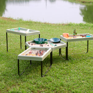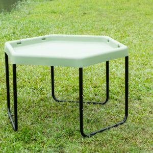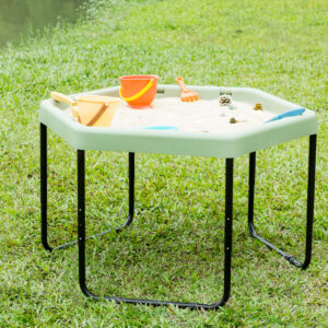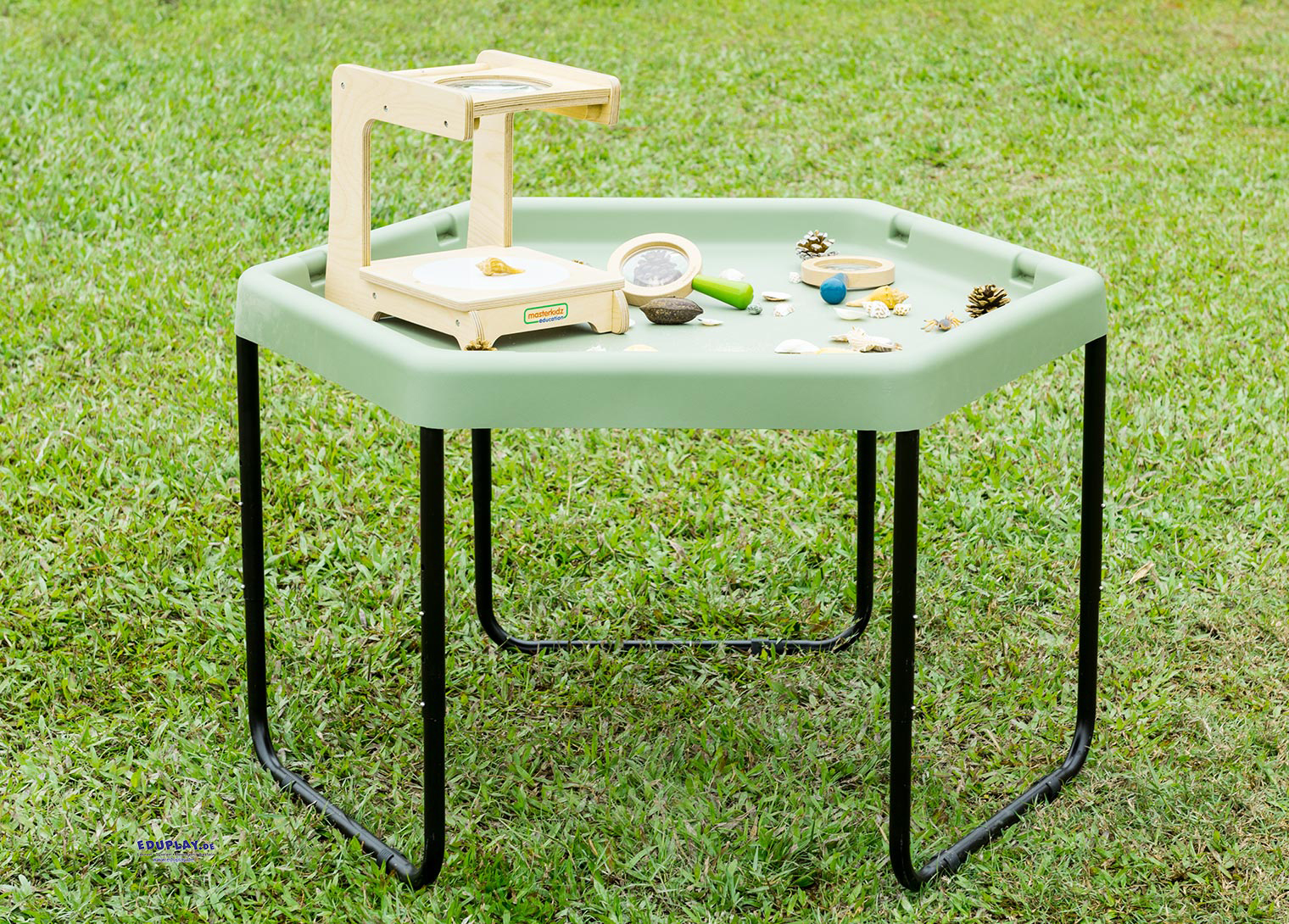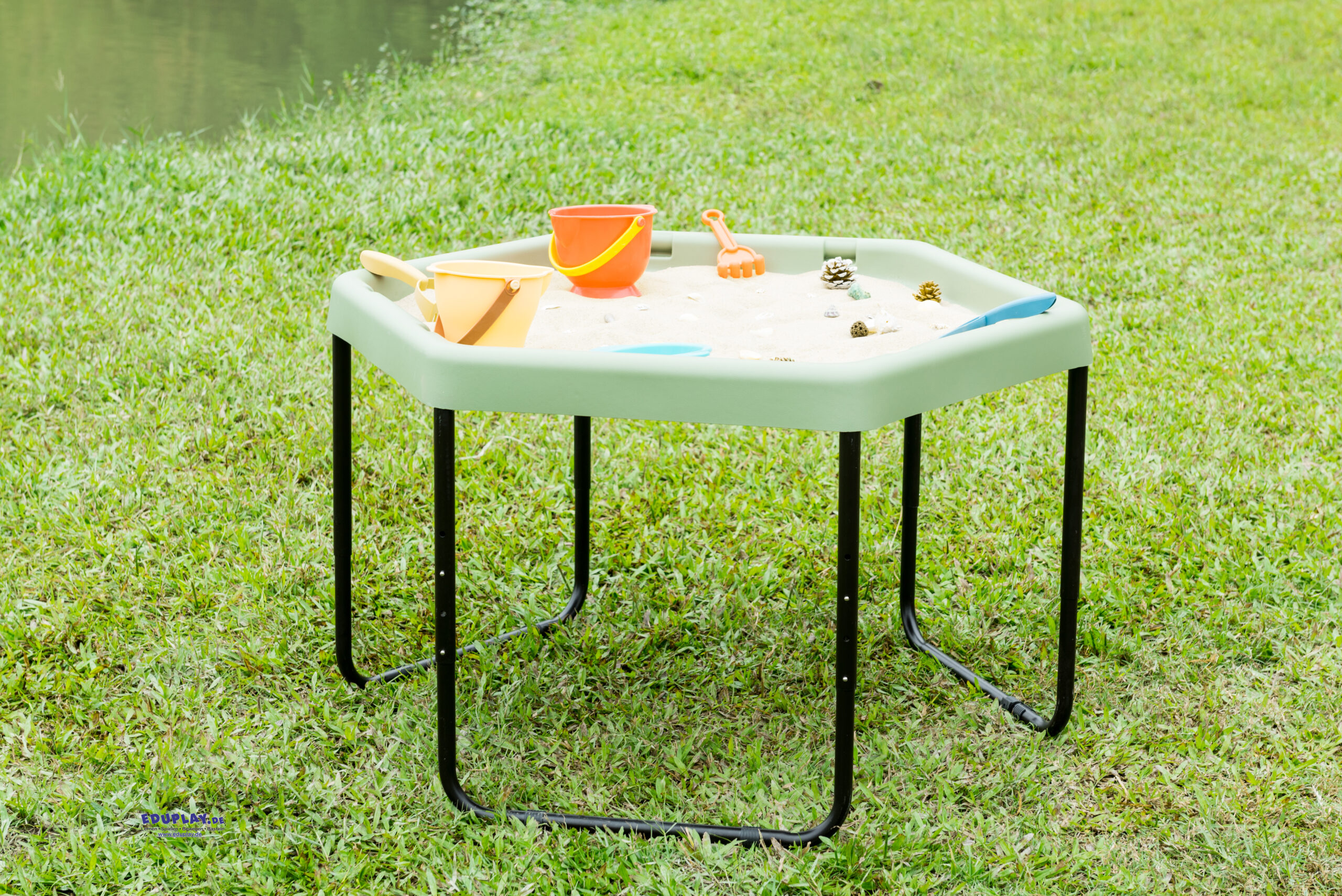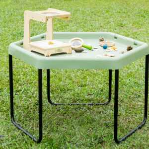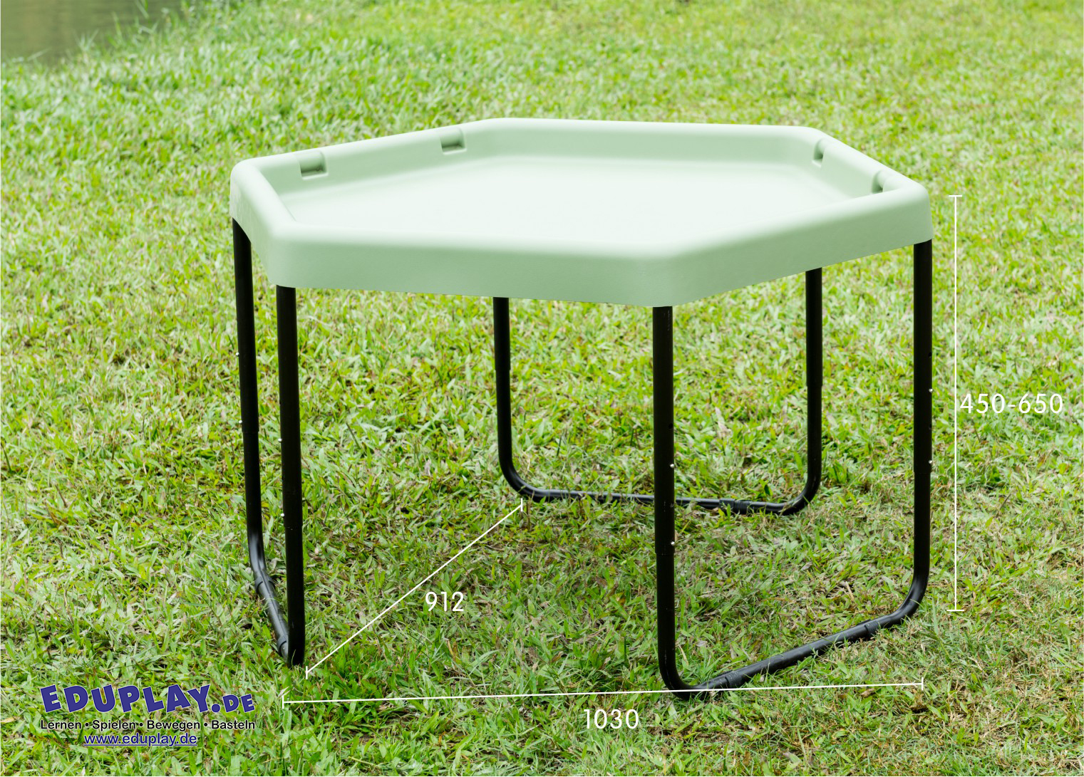 … in der Farbe Salbei sieht natürlich aus und ist ideal zum Ablegen von Naturmaterialien, Pflanzen, Blättern und Fundstücken zum Beobachten und Entdecken. Wenn Kinder Samen einpflanzen, verhindert das Spielbrett Unordnung und bietet Platz für Werkzeuge, Behälter und Erde. Für freies Spielen mit Sand und Wasser ist es die perfekte Unterlage und lässt sich voll beladen leicht transportieren. Das Spielbrett ist vielseitig einsetzbar und groß genug für kreatives Spielen, für ein einzelnes Kind oder für Gruppen, für Rollenspiele, Bastelarbeiten und vieles mehr. Es kann auf dem Boden oder auf dem höhenverstellbaren Ständer (separat erhältlich) verwendet werden, dessen Beine (45/55/65 cm) an das Wachstum der Kleinkinder angepasst werden können.