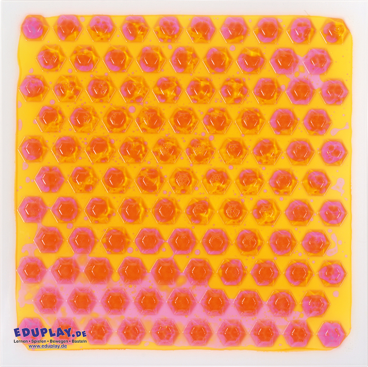 … Das 6-teilige Sensorikmatten-Set mit verschiedenen Oberflächenstrukturen bietet Kindern spannende sensorische Erlebnisse. Jede Matte hat eine einzigartige Oberfläche: ein Labyrinth, eine Blätterstruktur, sechseckige Pyramiden und runde Noppen, die mit Händen und Füßen erkundet werden können. Beim Fühlen und Balancieren werden taktile Reize gesetzt, die Feinmotorik, Gleichgewicht und Körperkoordination spielerisch fördern. Die bunten Farben und Strukturen regen die Fantasie an.