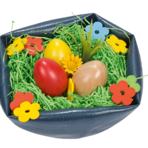 Der Softball ist mit 23 cm Durchmesser größer als die meisten Softbälle und in ansprechendem Metallicblau erhältlich. Dank des Trichters kann die Luft leicht abgelassen werden und der Ball lässt sich zum Osterkörbchen (Abb.3) formen. Ideal für alle Ballspiele und Übungen sowie als Geschenkartikel geeignet.