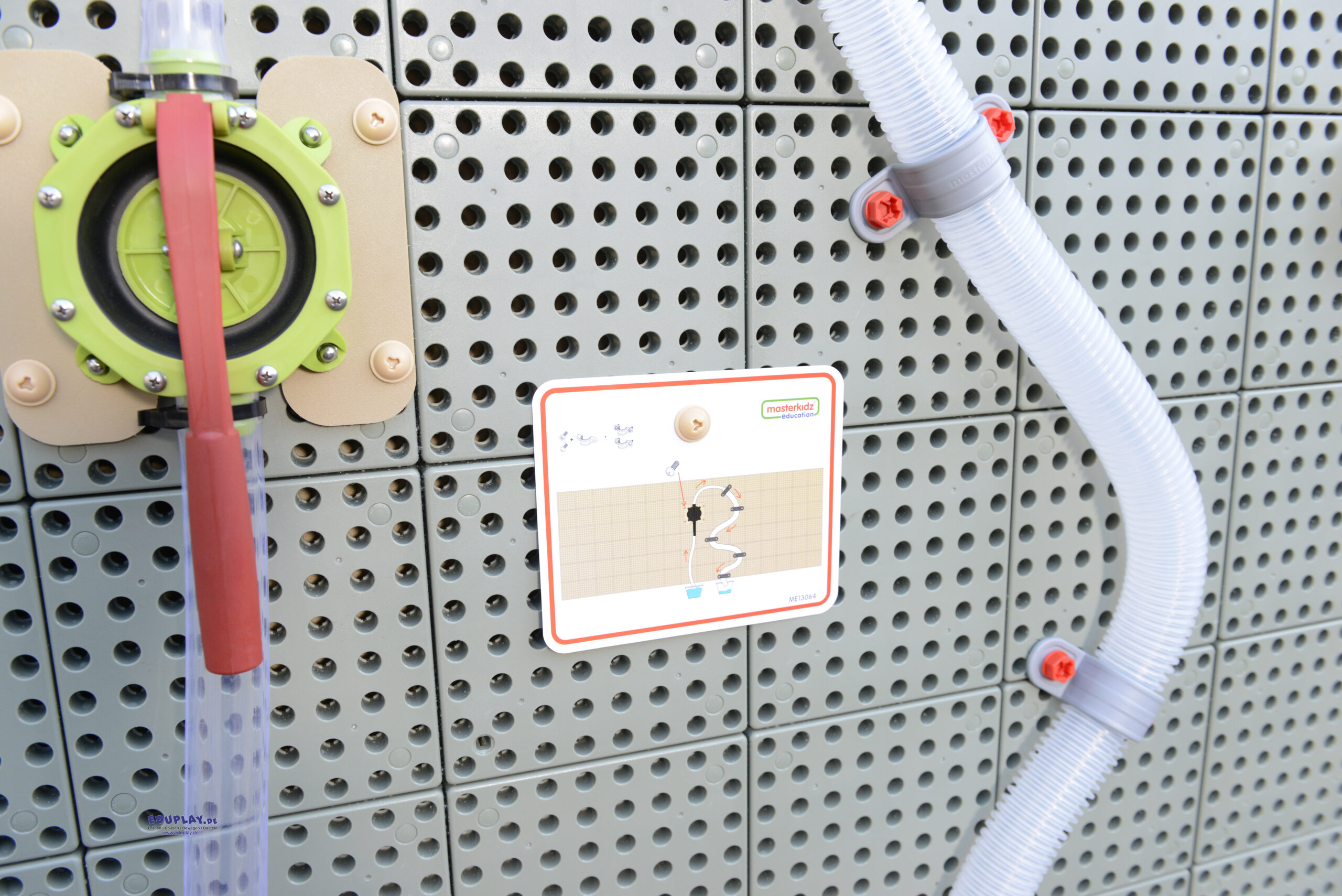 … mit dieser funktionierenden Wasserpumpe, mit der Kinder ein Rückflusssystem bauen können, das das Wasser wieder nach oben in die Wasserrutsche pumpt. Kinder können sehen, wie die Pumpe funktioniert, und haben Spaß beim Pumpen. Dabei lernen sie die Technik kennen, die in echten Wasserkraftwerken verwendet wird.
