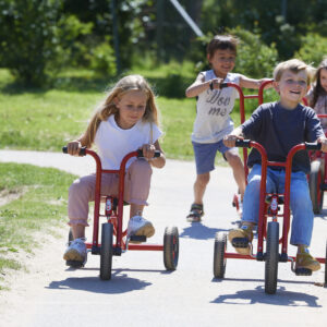 Das Sortiment deckt eine große Vielfalt und viele Möglichkeiten ab, Es gibt traditionelle Dreiräder, Taxi-Modelle für mehrere Kinder zur Stimulanz für Rollenspiele, Roller und Fahrräder für Balanceverhalten und Koordination und Spezial-Modelle für aktive Herausforderungen und Fahrzeuge für Kinder mit motorischen Defiziten.