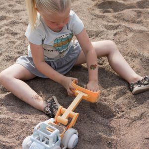 Der Jumbo-Bagger ist die Maschine, die alles hat, was ein kleiner Baumeister sich wünschen kann. Der Spielzeugbagger hat eine robuste, bewegliche Schaufel, leuchtende Farben, die auf dem Bauspielplatz die Aufmerksamkeit auf sich ziehen, und ein einfaches, zeitloses Design, das der Kreativität freien Lauf lässt. Das Material ist sowohl umweltfreundlich als auch langlebig und verspricht langanhaltendes, spielerisches Buddeln über Jahre hinweg.