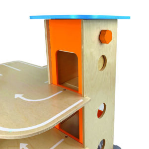 Der Helikopterlandeplatz auf dem Dach des Aufzuges macht den Spielspaß komplett und die angesteckte, vordere Spielebene erhöht den Spielmehrwert und den Aktionsradius der Spielautos.